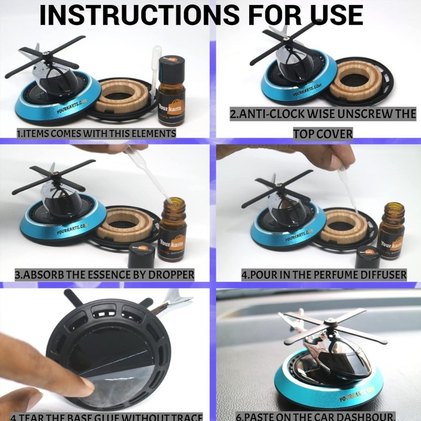 Bring freshness and style to every drive with the Blessed Charm Car Aroma Diffuser Helicopter. Designed to enhance your car interior, this unique helicopter-shaped diffuser spreads a pleasant fragrance while adding a premium decorative touch to your dashboard or air vent. Its rotating propeller design creates an attractive visual effect, making it both functional and stylish for daily use.